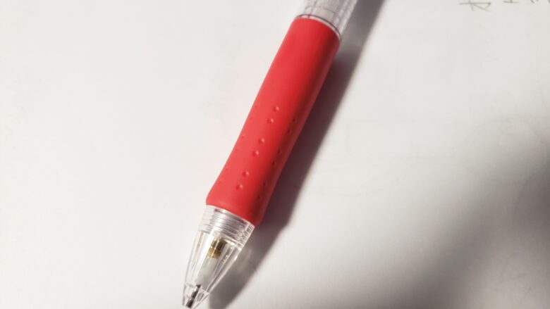 ボールペン用のボディを流用しているのか、シャープペンとしては珍しく赤ボールペンのようなボディになっています。ちなみにブルーとブラックのボディも存在しています。