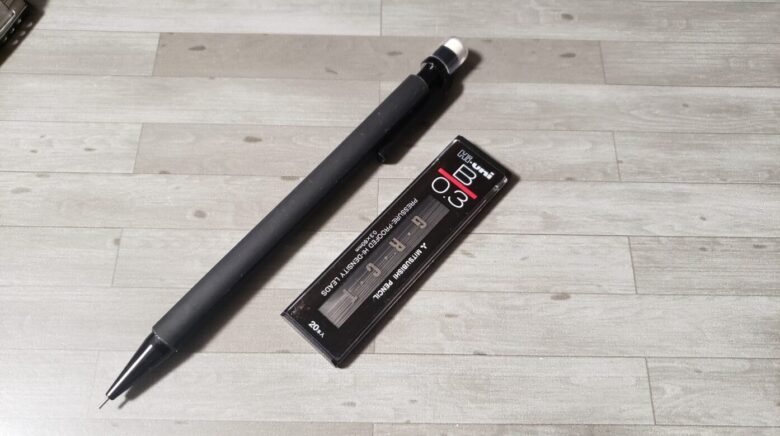 ポリターに限った話ではありませんが、0.3mm対応のシャープペンはガイドパイプが非常に破損しやすく危険です。こちらは安価なペンですのでそこまで気にしなくてもよいのも利点と言えるでしょうか…?