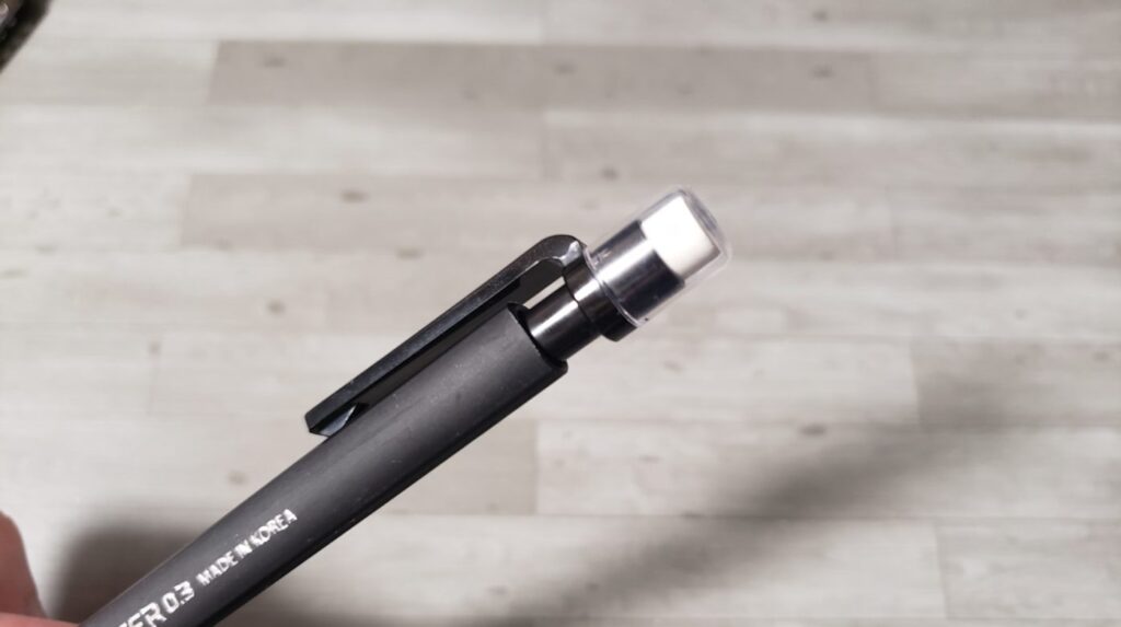 比較的大きめの消しゴムがノック部分に標準装備されています。