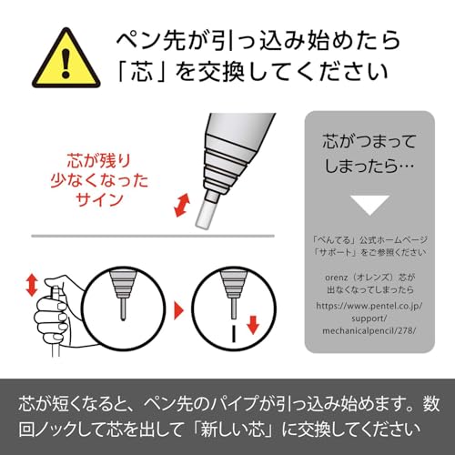 オレンズの構造上、芯が折れにくいとはいえ安定した筆記ができるに越したことはありません。