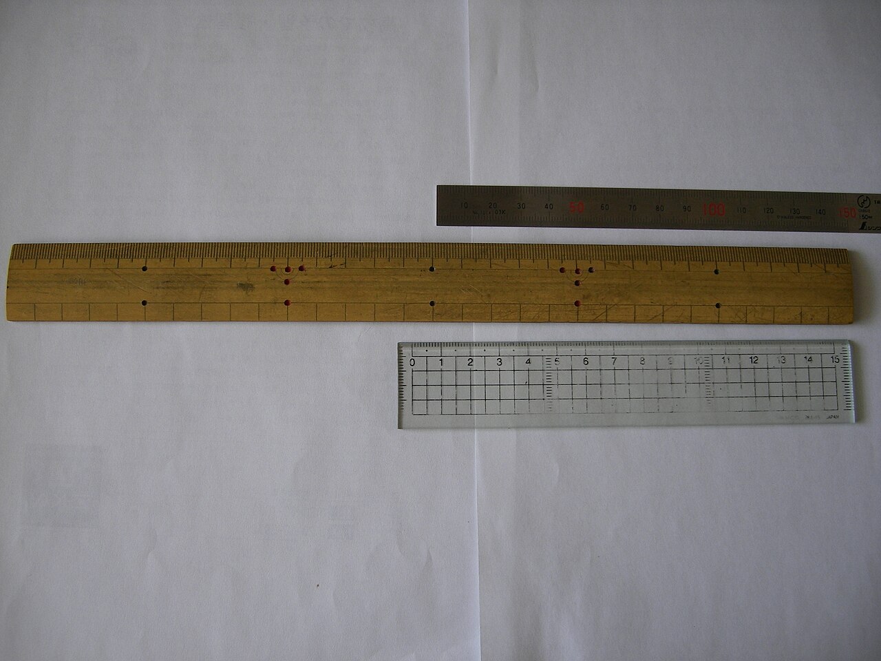 定規は直線や図形を描くためのもので、メモリの始まりが端からではないのも特徴です。